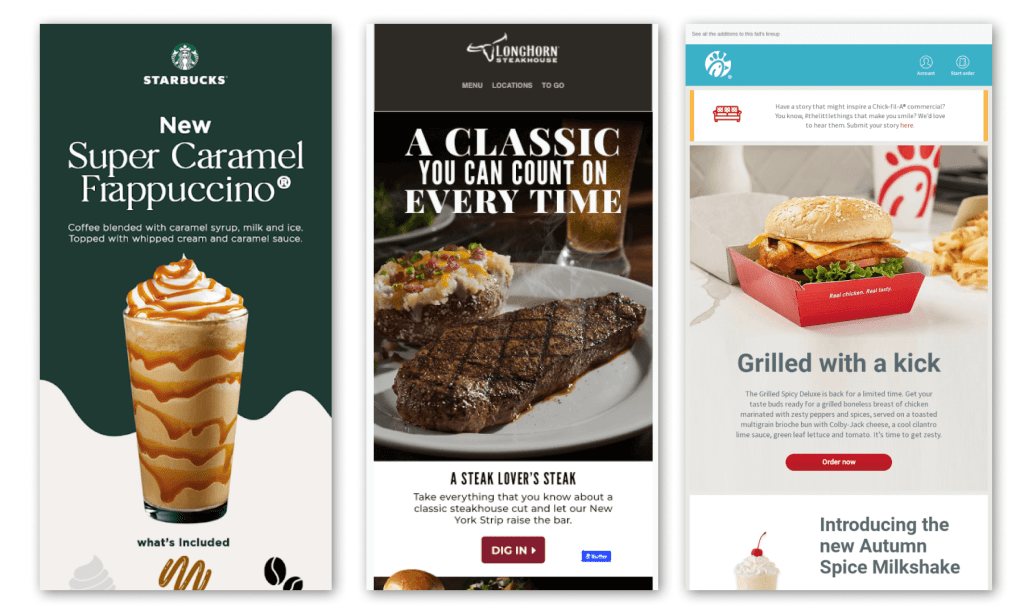 Seasonal campaigns are particularly effective for Starbucks’ email strategy. Promotions for drinks like the Pumpkin Spice Latte or holiday beverages are launched through visually striking emails that build anticipation and excitement among subscribers. By pairing limited-time products with engaging visuals and strategic messaging, Starbucks transforms email campaigns into powerful marketing moments that drive both online engagement and in-store traffic.